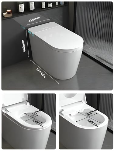 Only in white color. Comes in basic and premium variants. Standard floor discharge 300mm/400mm (S-trap), discharge customizable upon request.