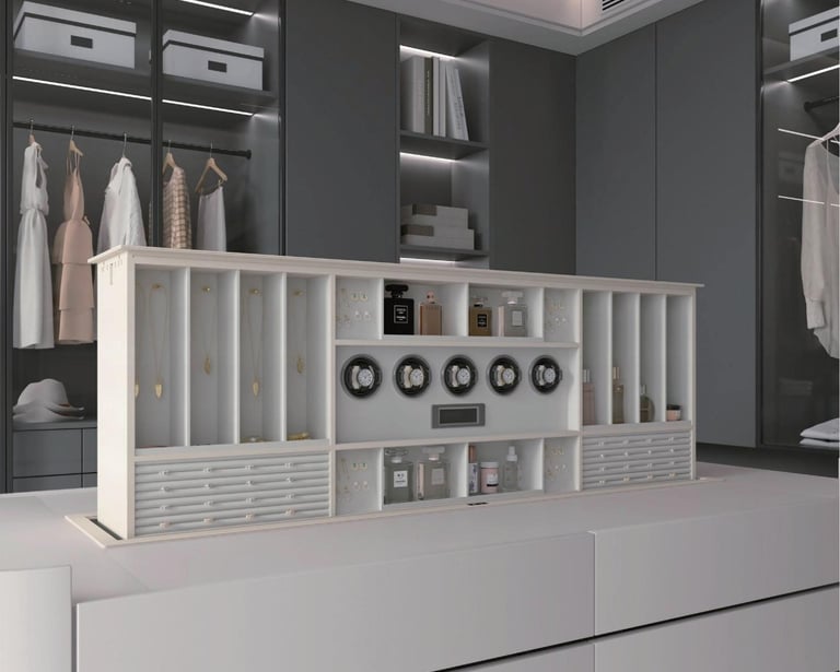Too many precious watches, jewelries without proper storage? Too messy and disorganized? Our smart wardrobe organizers offer discreet and proper storage of your precious possessions. Voice and touch activated. This provides easy access to items stored in difficult-to-reach locations. These smart organizers also instantly give your wardrobe an instant upgrade. Click here for catalogue.